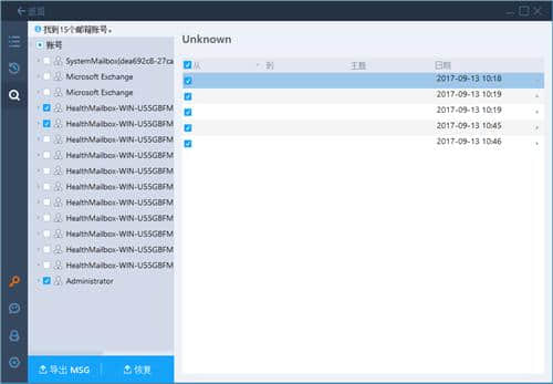 此工具可以恢复Exchange邮箱、电子邮件和其他关键数据。用户可以自定义恢复方法,并选择将数据恢复到当前数据库或新数据库中并存储在中。msg格式。