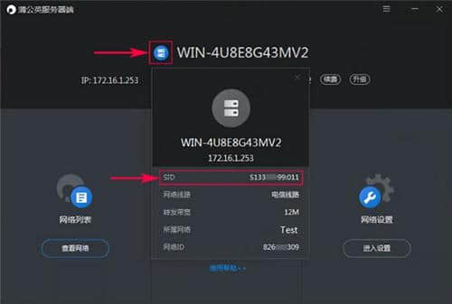 2.使用密码登录到服务器客户端后,将生成一个SID。单击主机名或其旁边的图标查看样本号。
