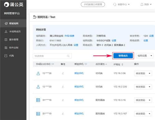 6.单击添加成员-选择软件成员。在弹出窗口中,选择最终成员作为成员属性,输入添加的数量和密码,然后单击确定。