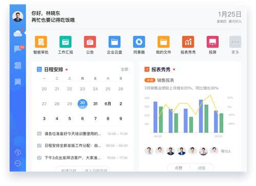 4.新的企业工作区,多个应用程序:与工作相关的应用程序帮助用户更好地管理他们的日常工作。结合企业社交平台,可以快速展示和分享工作的进展和成果,获得持续的反馈和指导。
