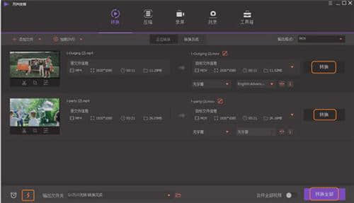 4.最后,点击右下角的全部转换按钮开始转换。或者可以点击右侧的转换按钮,逐个进行转换;