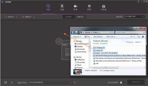 1.通过文件浏览器窗口找到想要转换的媒体文件,将想要转换的媒体文件拖拽到万兴优转的转换标签中;