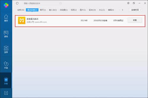 -安装并打开360软件管理器,在卸载选项列表中找到小火花自媒体助手并单击卸载。