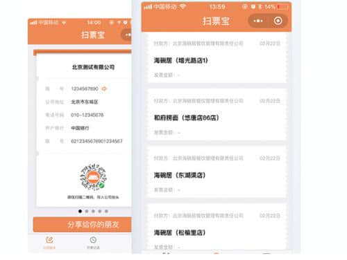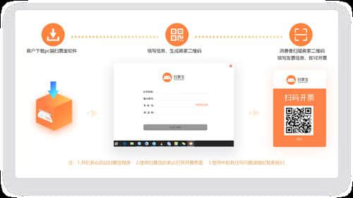 扫描二维码后,纳税人识别号和公司名称从消费者传输到商家开票计算机。