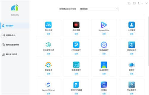 内置多种用户下载热门软件,用户可以有选择地点击下载来体验,比如奥润投影屏、奥润录制屏等。