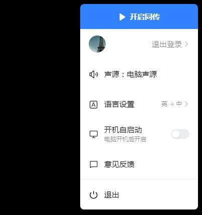 2.单击托盘上的百度翻译同传助手图标调出配置选项。