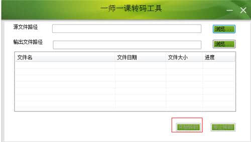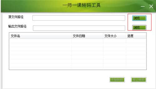 2.点击输出文件路径后面的浏览按钮,选择输出文件路径,转码后会放入这个输出路径。选择两者后,开始转码并单击按钮。