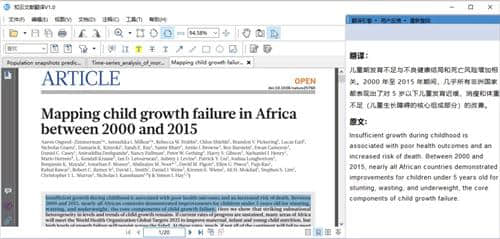 1.自带PDF阅读器,打开左边的PDF,选择一个段落,右边自动给出翻译。自动语言识别,汉英翻译。