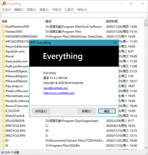Everything只索引文件名和文件夹名,通常只需要几秒钟就可以建立它的数据库。