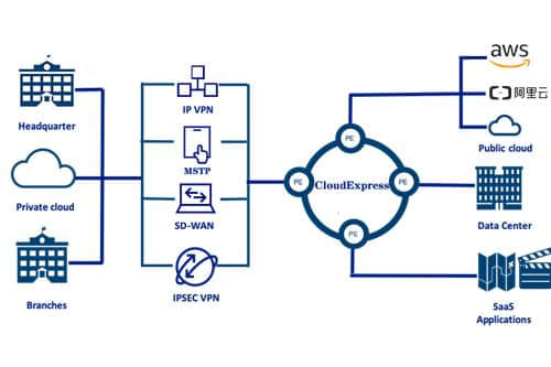 多云互联:通过CloudEX,可以快速与AWS、阿里巴巴云、Azure、谷歌云、云、华为云等建立专网连接。
