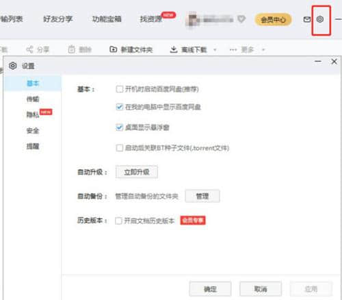 1.打开百度网盘应用,输入密码登录主页面,点击右上角【设置】-【设置】进入设置功能页面。