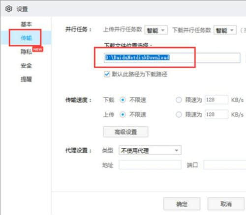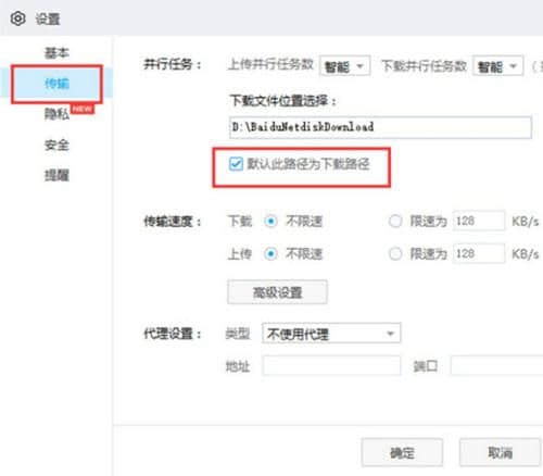 3.在【传输】界面,勾选“此路径默认为下载路径”。