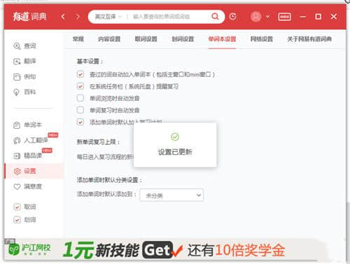 点击有道翻译软件设置-单词本设置-勾选第一项。