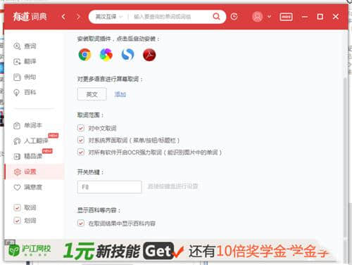 点击有道翻译设置-软件设置-字词检索设置-勾选OCR强字词检索。