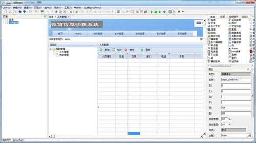 打开主菜单,页面->:添加页面。选择:整体页面-人员管理。