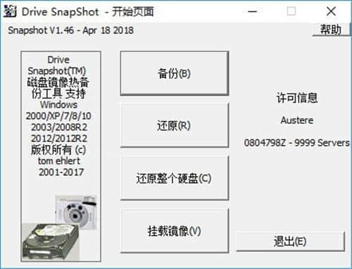 备份到指定的硬盘并将其镜像到硬盘文件,无需重新启动;