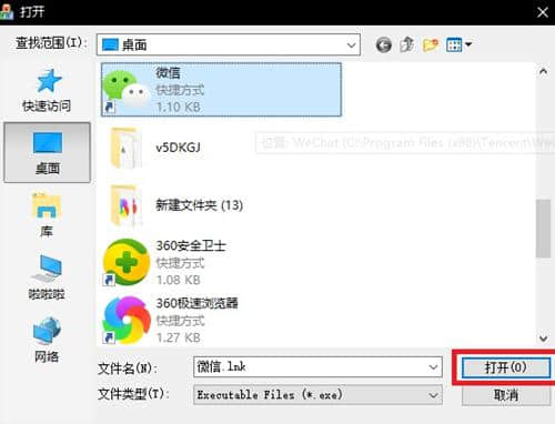 2.单击以选择更多要打开的程序,或直接将快捷方式拖到窗口以完成设置。