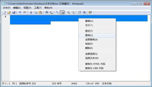 1、打开软件,我们首先需要阅读文本,全选然后按Ctrl+C。