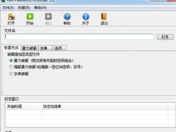 点击“打开文件”打开需要破解密码的压缩包。