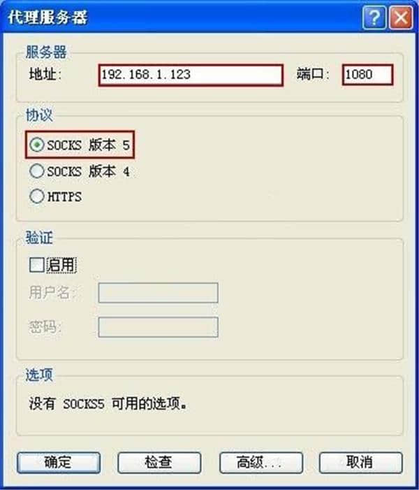 4.在弹出的对话框中,输入IP地址和SOCKS端口,选择“SOCKS版本5”单选按钮,然后点击“确定”按钮。