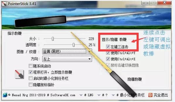 3.其实用起来很简单。打开软件,连续左键三次,调出或隐藏虚拟教鞭。