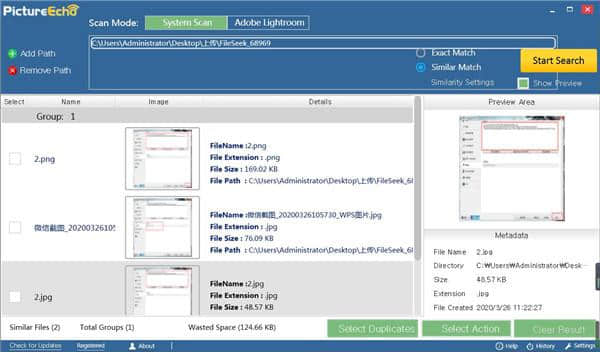 2.精确的重复照片查找器:100%的相同照片被识别为重复照片。