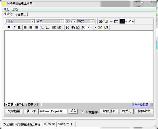 网络编辑超级工具箱软件下载,这里有一个非常实用的办公程序,它可以让用户一键清除格式而不破坏原拷贝内容。网络编辑超级工具箱根据已有的历史痕迹进行搜索,将简化您办公室的很多操作流程,提高我们的编辑效率!