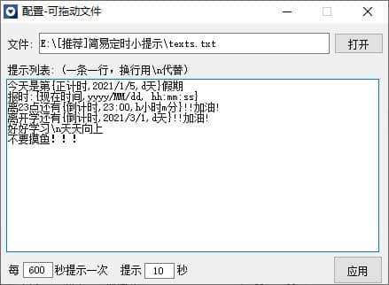 简易定时小提示免费版免费下载主要用于应用软件定时桌面管理工具的电脑软件,创佳软件园小编接下来针对简易定时小提示软件作一番介绍,小编亲测,并了解了简易定时小提示1.0这款软件的过人之处!值得一用!快来下载体验一下吧。