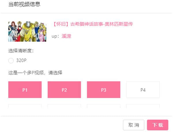 2.还可以选择多个P,快速下载各种清晰度和流程。