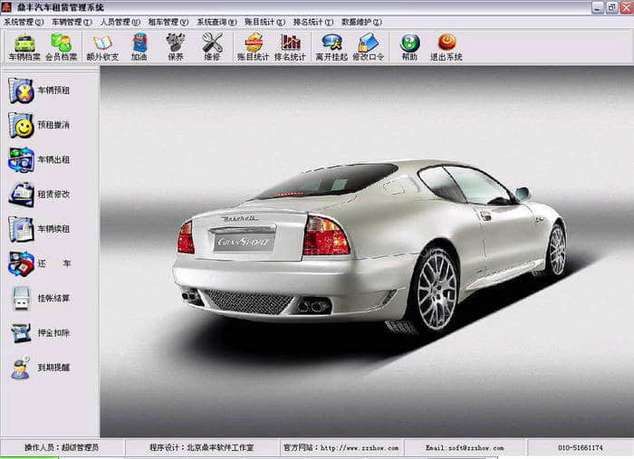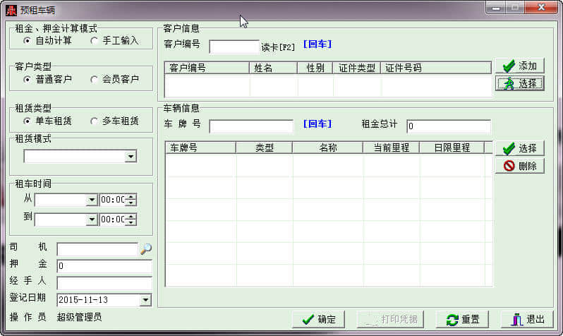丁奉租车管理是一套为租车行业量身定制的行业管理软件。该软件集成了目前汽车租赁行业流行的租车流程,包括汽车预租、预租取消、汽车租赁、汽车续租、退车结算、租赁期满提示等功能。操作简单,界面清晰。同时,软件提供了丰富的查询报表:预租查询、预租取消查询、租车查询、租车排名等。,这样就可以随时对数据进行多方位的统计查询。软件的车辆管理模块让你管理车辆更加方便,提供加油、保养、维修、保险多方位一体化管理模式,让你轻松应对。租车客户分为普通客户和会员客户,这样可以更好地了解和掌握客户群体。