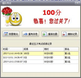 100%完全模拟车管所考试界面;100%完全模拟车管所的考试难度和比例,与车管所的正规考试软件具有相同的界面和操作方式,让学生在实践中尽快适应考试环境,消除考试恐惧。