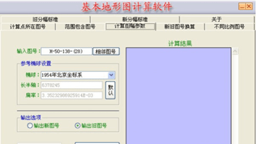 国家基本地形图计算软件是根据国家标准GB/T13989-92《国家基本比例尺地形图分幅与编号》和老系列基本地形图分幅标准设计编制的多种计算功能。它主要为地图表的搜索和计算以及地图之间的包含关系提供了一个简单的计算工具。