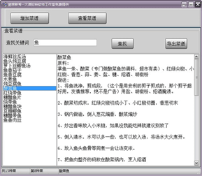 沙漠驼铃软件工作室的厨房新秀烹饪软件收集了很多菜谱,这个软件最大的亮点就是可以随意添加菜谱,导出菜谱。
