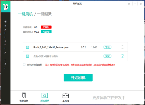 在刷机界面直接可以直接下载固件或者是选择已下载的设备固件