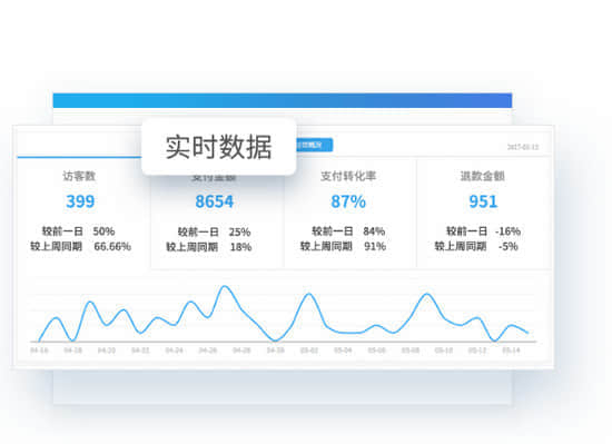 店铺基础营运数据实时查看首页数据面板支持订单、评价、商品、流量、访客,成交等数据配置想看哪个就看哪个