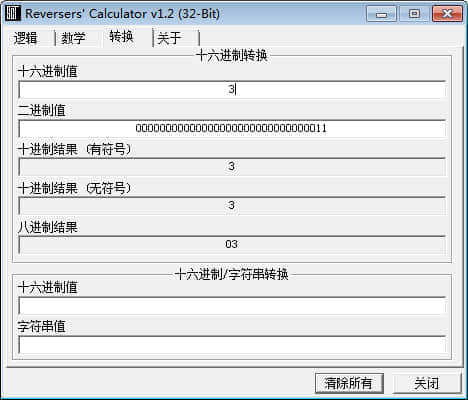 如果需要转换逻辑值,只需打开软件选择想要的计算方式,输入想要计算的十六进制数值点“=”,就会得到结果。