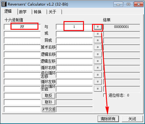 如果你需要进行逻辑值得换算,只要打开软件选择你要计算方法,输入你想要计算的十六进制值点“=”号就会有结果了