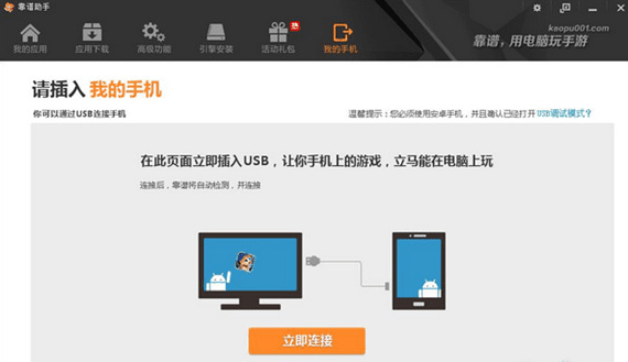 PS:如果长时间无法连接,请确认您的驱动程序安装是否正确。4.出现以下屏幕时,单击“下载”在计算机中安装应用程序(靠谱助手):