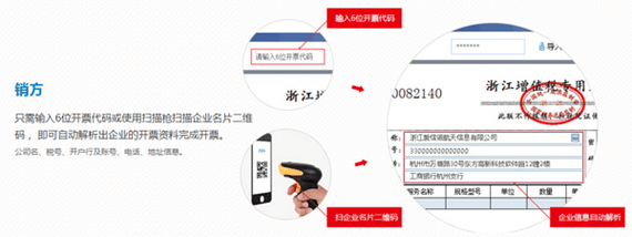 1、购方仅需提供6位开票代码,或出示企业名片二维码轻松开票。
