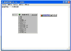 超强两笔输入法首创阴阳全除法则,选码直观简单;不重码补码技术实现了整个词库的不重码;能够输出2013年通用标准汉字表中所有GBK字和字词,并在词库中选择87000个字词;不能读的字可以全形式输入,不能写的字可以拼音输入,无需切换。