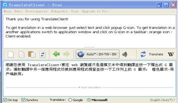 谷歌翻译器特点:小绿免费在线翻译软件无插件;使用谷歌翻译API智能引擎;能翻译52种语言;自动监控剪贴板,即翻译;显示拼音,显示词典,随意查阅很多国家的小词典;支持文件翻译,也可以翻译超大文本;翻译结果可以保存到文件中;自动缓存3条翻译记录,可返回查看;谷歌翻译原始英语语音支持