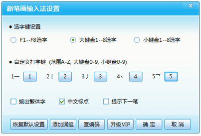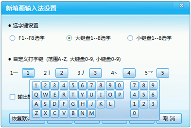 2.默认情况下,笔记本1-5种,F1 - F8选词,桌面小键盘1-5种,大键盘数字键选词;您还可以自定义键入键和字符选择键。