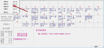 查询待测短语或输入短语的五笔码,随时按F1显示根键图;