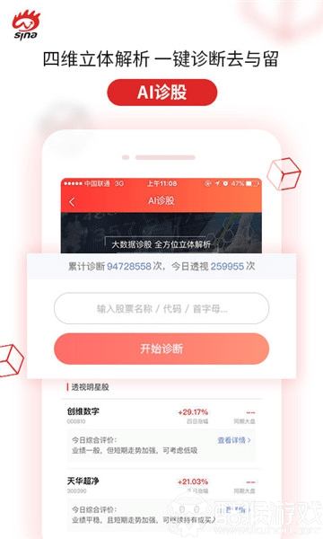 选股是一款简单实用的网上股票详情信息软件。该软件可以有效地帮助用户在互联网上进行简单的股票业务,在互联网上可以从多个角度分析股票市场,从而帮助用户做出正确的判断和选择。还有AI诊断单元,可以让用户从专业的角度深刻把握股票的走势,然后进行判断。