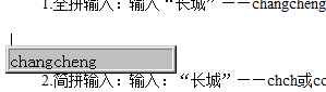 1.全拼输入:输入“长城”——changcheng。如图1所示