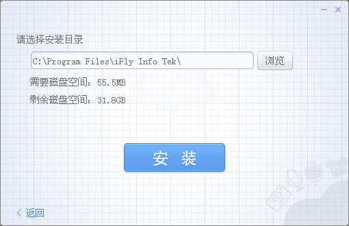 1)双击讯飞输入法PC安装包.exe文件,您可以看到【讯飞输入法 安装】,点击下方【确定】按钮,如下图所示: