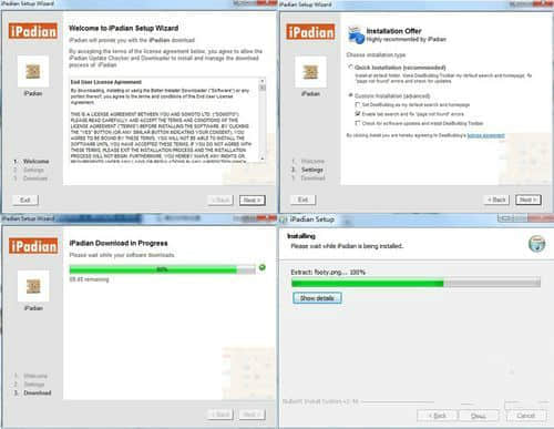 1.安装iPadian的安装方式与一般的PC工具无异,笔者使用的官网的在线安装工具,下载好在线安装工具后,启动之,才开始下载真正的安装包,安装包下载完成后,点击“NEXT”进行安装即可(iPadian目前只有英文版)。