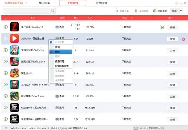 快用苹果ipad助手软件功能: