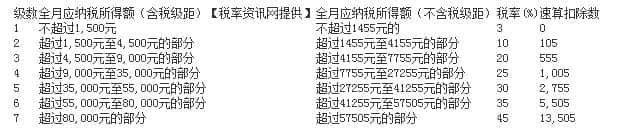 个人工资收入扣除标准提高到3500元。扣除后,个人所得税可按以下征税范围税率计算。2012年7月22日,我们为“家庭征收个人所得税”改革做了技术准备。