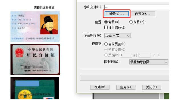 3.点击浏览按钮,选择要设置为水印的背景图片。